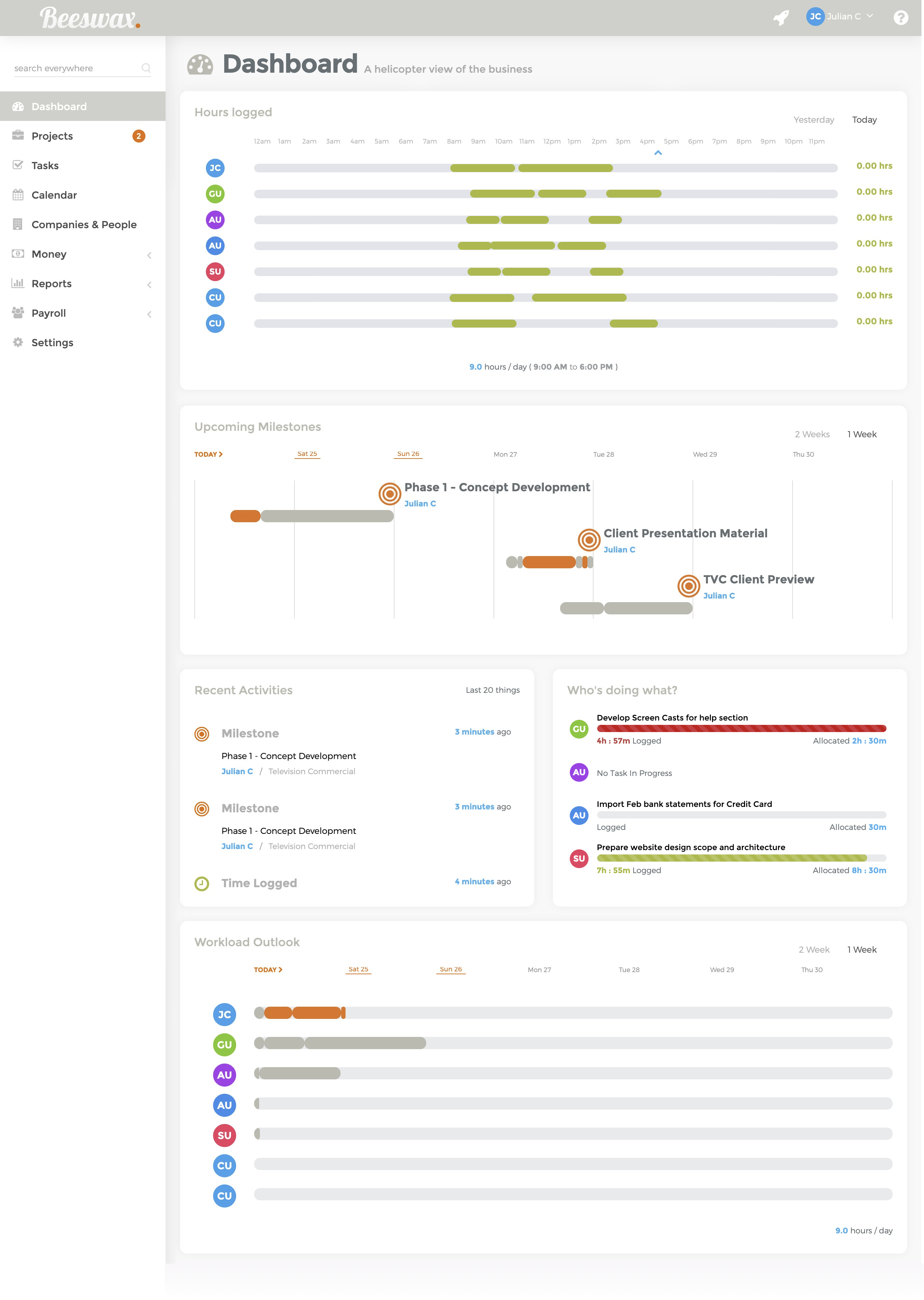 The General User only needs to see things relating to their Tasks and Time. They don’t get to see any Money related things. It’s not really relevant to them.